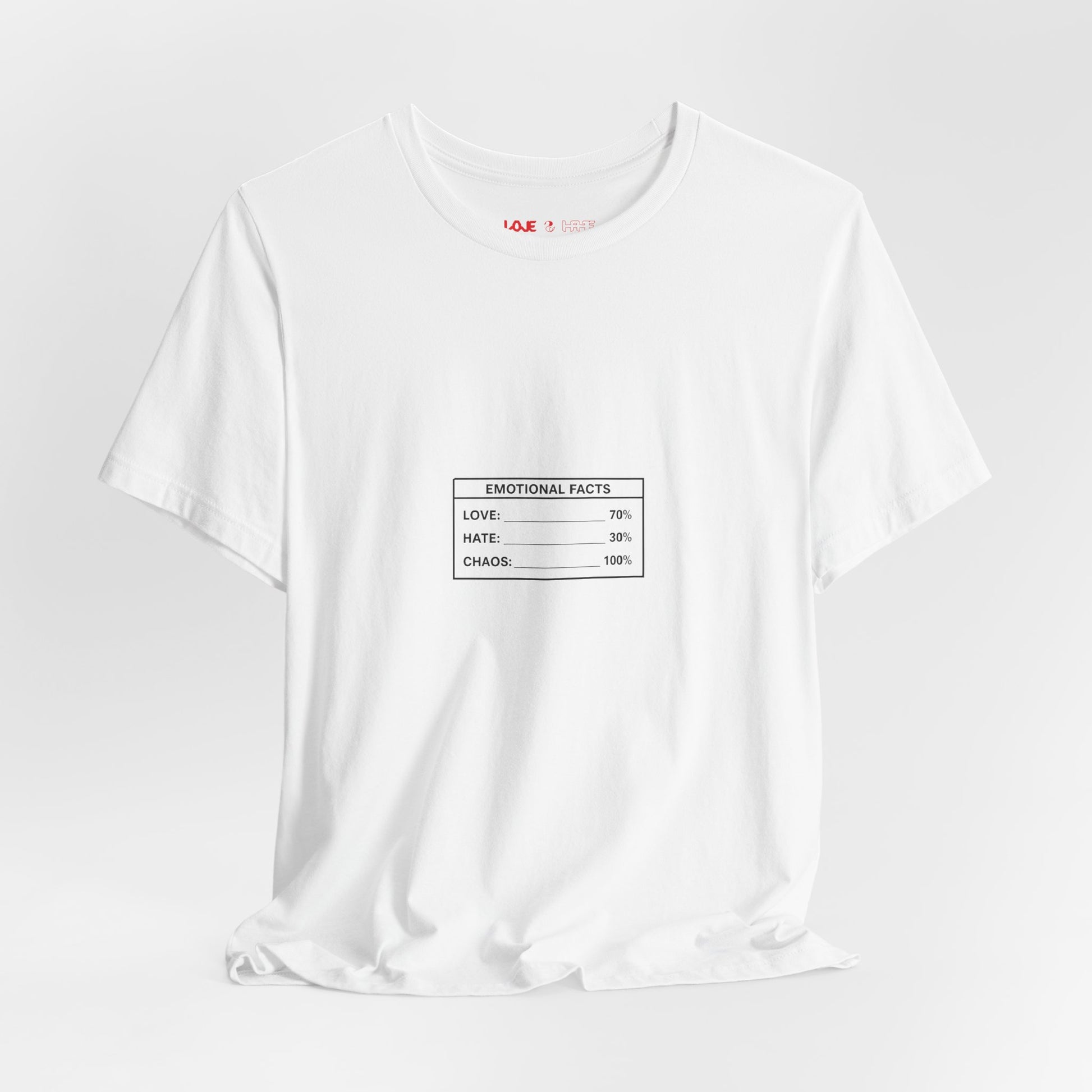 The Emotional Barcode Tee turns emotion into a product label — because that’s how the world treats opinions anyway. A small, understated box on the front keeps it clean. A bold barcode on the back does the talking.