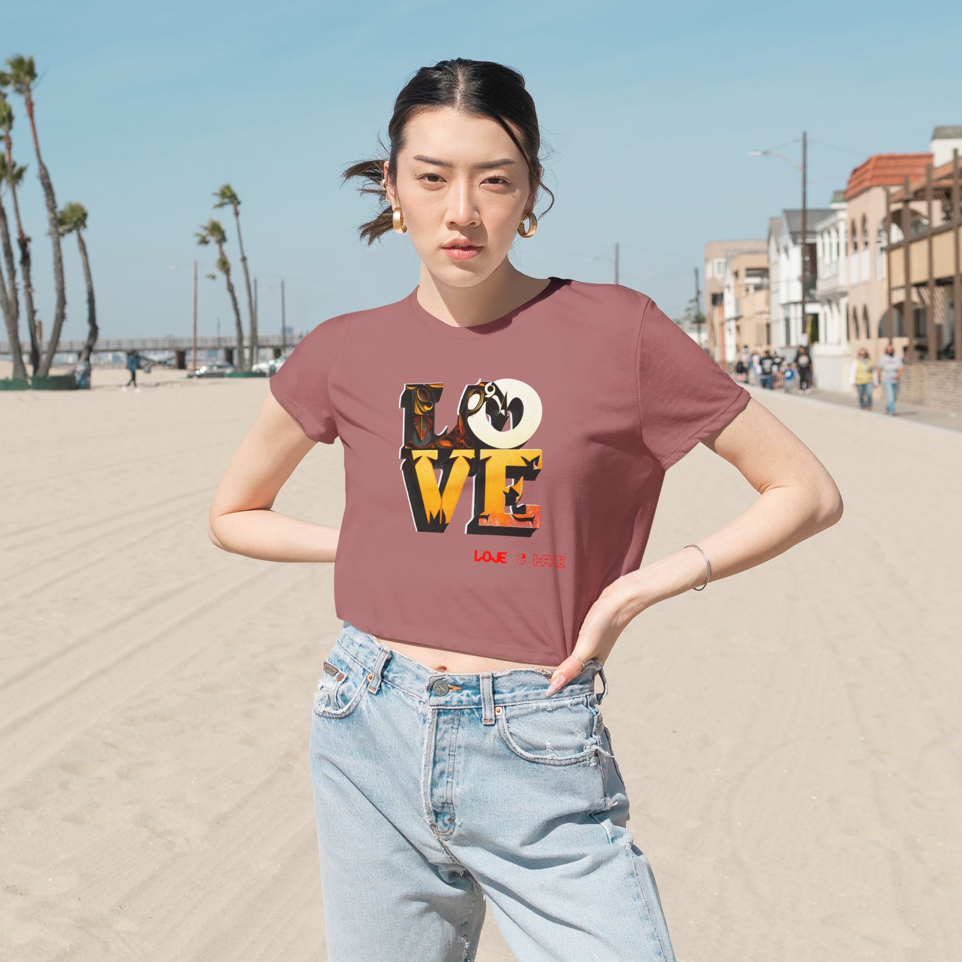 Bold and artistic, our ‘LOVE’ block flowy cropped tee makes a statement with one word. Designed for those who embrace creativity and passion, this piece turns simplicity into a work of art.